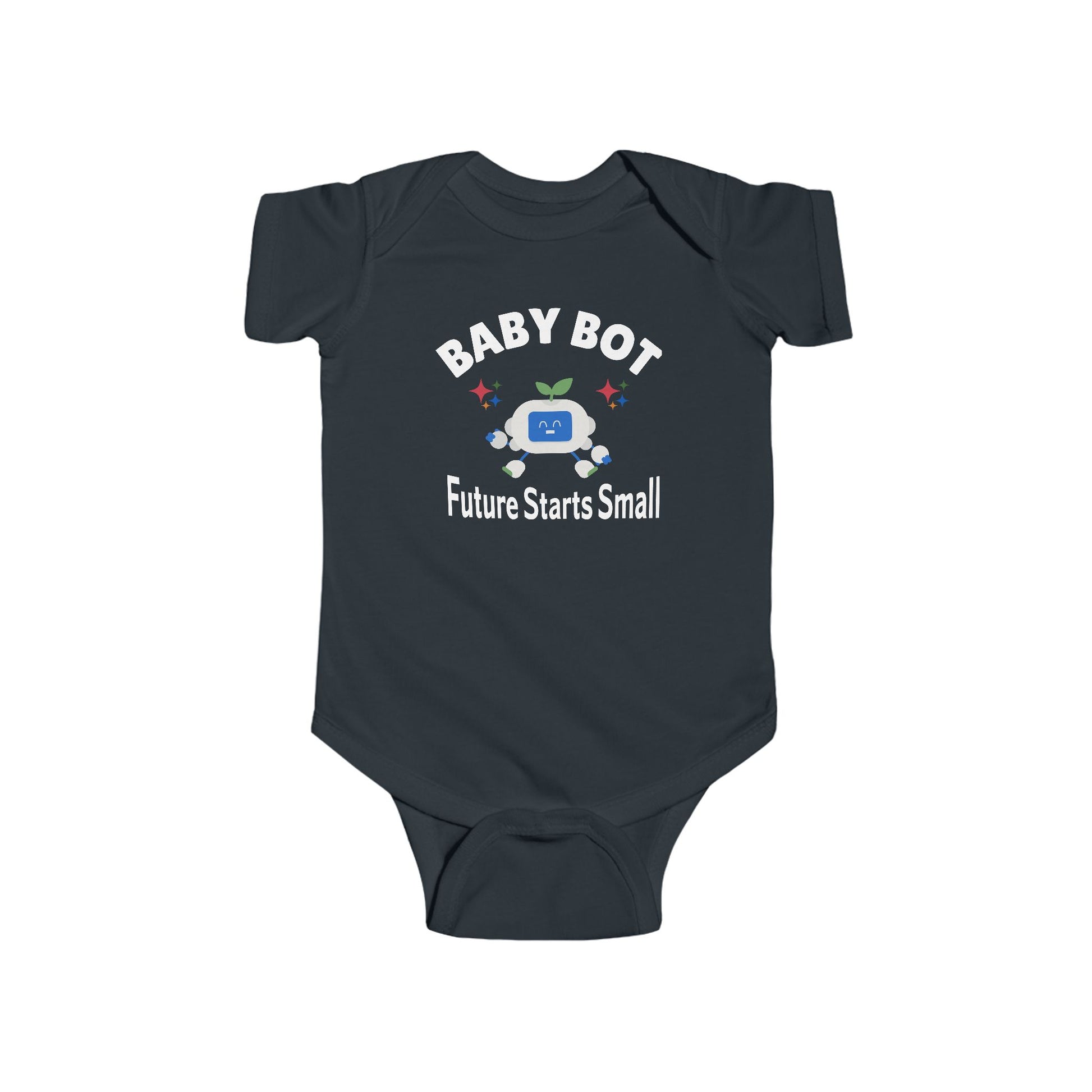 Introducing our adorable 'Baby Bot' Infant Bodysuit, perfect for your little one's wardrobe, newborns, and babyshowers! This soft and snug bodysuit is designed with comfort and cuteness in mind. Featuring a charming graphic that says "BABY BOT - Future Starts Small," this outfit brings a playful vibe to any baby’s day. Ideal for new parents, expectant families, or anyone celebrating a new addition to their lives, this bodysuit is a thoughtful gift for baby showers, birthdays, or any joyful occasion. Made for carefree moments and endless cuddles, it’s perfect for playdates, family photos, or just lounging at home. Dress your little one in style and let them shine!