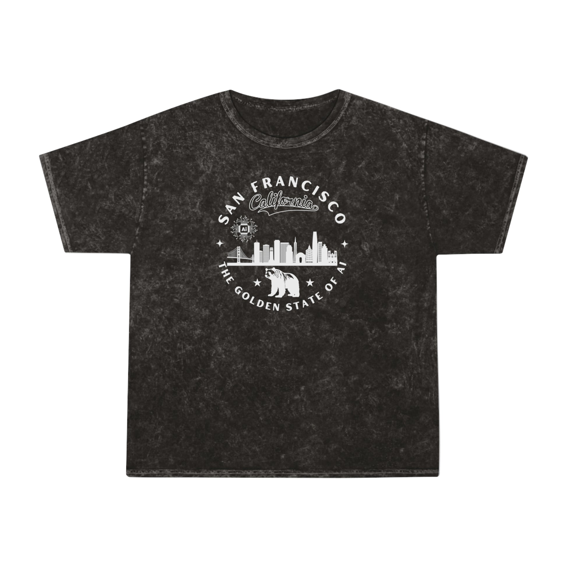 Introducing our stylish Unisex Mineral Wash T-Shirt, with our exclusive SF CA The Golden State of AI design. This T-shirt boasts a beautifully hand-dyed finish, offering a one-of-a-kind vintage look that sets you apart. The light fabric feels great against the skin, making it ideal for everyday wear or lounging around. Whether you're heading out with friends or enjoying a cozy day at home, this T-shirt fits seamlessly into your wardrobe. It's perfect for anyone who appreciates casual style and quality craftsmanship. Ideal for gifting on occasions like birthdays, holidays, or just to brighten someone’s day!